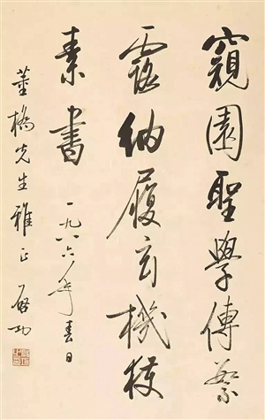 在“金耀基八十書法展”上,著名學(xué)者余英時托董橋轉(zhuǎn)達對金耀基書法的評價,同樣意味深長。余英時表示,他不愿將書法從金耀基的“人生中完全孤立出來”。藝術(shù)精神貫穿在金耀基的全部生命之中,書法不過是其中的一環(huán)而已?!笆聦嵣希粌H他以‘語絲’為名的所有散文是藝術(shù)的化身,而且他在百萬言的學(xué)術(shù)論述中,也時時流露出藝術(shù)的光芒?!庇嘤r最后點睛一道:“我在室中走動,偶然抬頭看到他贈我的條幅,但我所見到的卻不是書法,而是書法家本人?!钡拇_,見字如見人,人所見的實際是字中所涵養(yǎng)的人格。