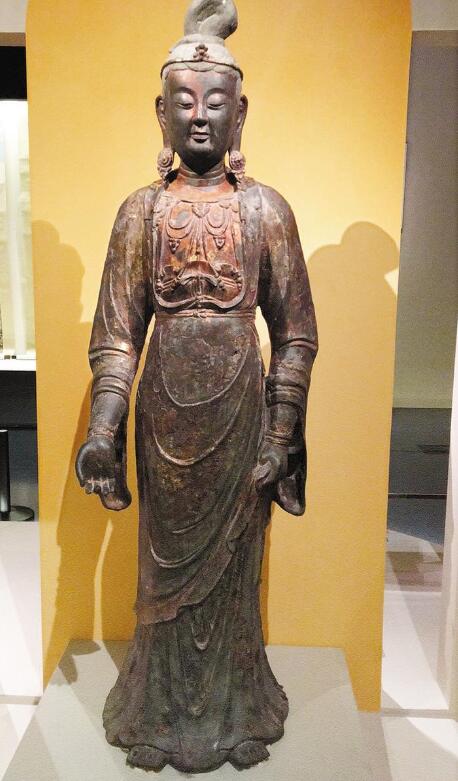記者看到,如今正在舉行的“觀照自在——中國(guó)古代觀音造像藝術(shù)展”展出中國(guó)漢藏兩大佛教體系中觀音及其化身、本尊、眷屬等相關(guān)造像共計(jì)百余件,包括銅造像、繪畫、瓷塑以及木雕等多種質(zhì)地,均為首都博物館所藏,藝術(shù)文化價(jià)值極高。由此亦可見首都博物館所藏佛教文物非常豐富。