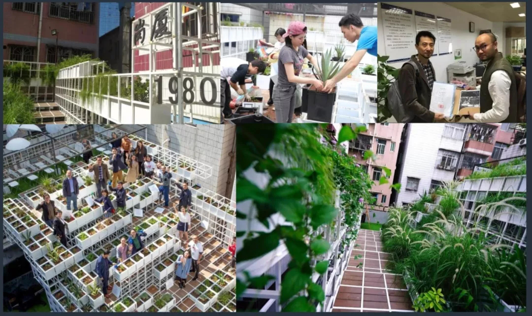 來自本地智慧的聯(lián)合創(chuàng)始人謝克非先生介紹說,作為城中村改造的實踐者,我們在做就是如何在這些矛盾中獲得共生。或者說,如何把所有矛盾點結合起來,讓城中村可以可持續(xù)地發(fā)展。所以在2018年3月聯(lián)合大自然保護協(xié)會(TNC)、桃花源生態(tài)保護基金會、深圳市城市規(guī)劃設計研究院、聯(lián)合公設發(fā)布了綠色天臺:愚公計劃2.0——崗廈1980海綿城市綠色屋頂示范項目。這個綠植天臺不僅是能夠美化環(huán)境,截存雨水、循環(huán)灌溉綠植等,更重要的是我們希望它作為一個平臺,把NGO的理念注入城中村,讓大家把對城中村的注意力從貧富懸殊、拆遷轉移到綠色環(huán)保,促進可持續(xù)的發(fā)展。這里不僅是個景觀的平臺,更是內容發(fā)動機,能夠持續(xù)地產生更多的內容。通過藝術、教育、公益等不同板塊的活動,以內容的方式,把文化、環(huán)保、可持續(xù)發(fā)展等的信號不斷在這個點上發(fā)散出去,讓大家重新認識城中村,從持續(xù)性的內容信息實現(xiàn)社區(qū)營造,服務不同階層的人,讓更多人覺得環(huán)保、教育這件事情其實是非常有趣的,不生硬的,大家會主動繼續(xù)攜手服務社區(qū)。