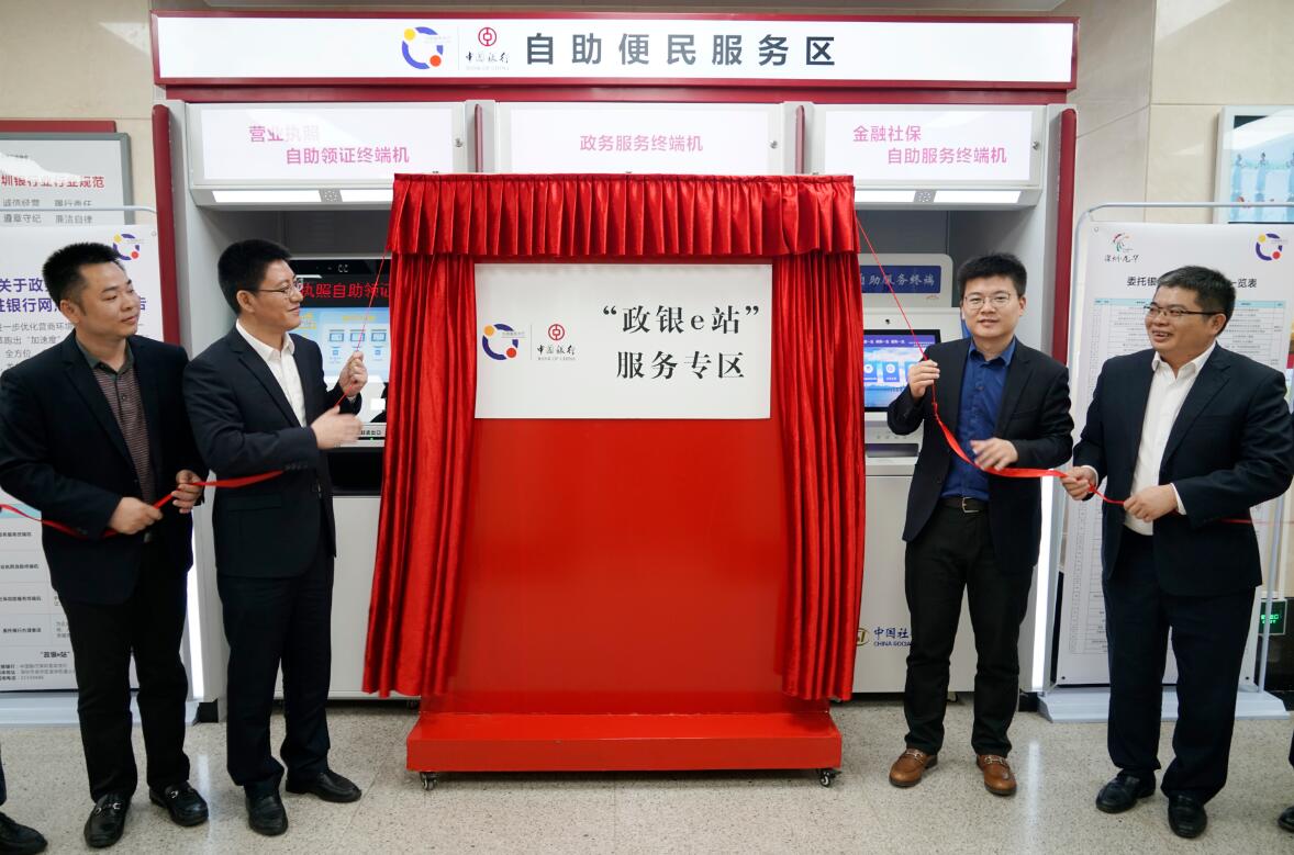 深圳新聞網12月13日訊 由中國銀行深圳市分行、龍華區(qū)政務服務數據管理局共同打造的全市首家“政銀e站”在中國銀行深圳龍華支行正式開門迎客。中國銀行深圳市分行李凡副行長、龍華區(qū)政務服務數據管理局熊帥局長參加“政銀e站”揭牌儀式。