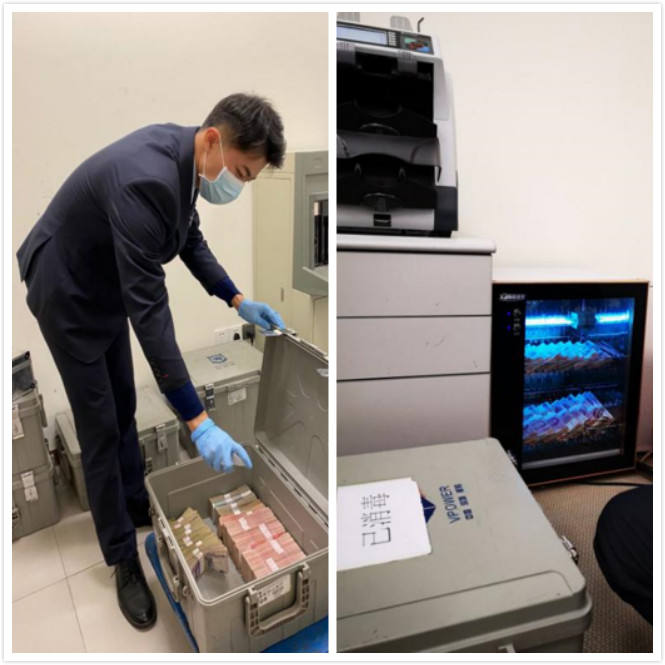 該行加強(qiáng)特殊時期現(xiàn)金管理,為轄內(nèi)所有現(xiàn)金網(wǎng)點(diǎn)配備專用現(xiàn)金消毒柜,要求回籠現(xiàn)金必須消毒處理,經(jīng)過14天的“隔離”方可對外支付,目前投放的錢盡量以原封新券為主。同時指派專人監(jiān)測自助設(shè)備運(yùn)行情況,做好外包服務(wù)疫情防控的指導(dǎo)和協(xié)調(diào)。