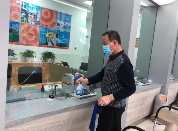 每天正式營業(yè)前,網(wǎng)點對營業(yè)大廳、自助設(shè)備、柜臺等進行360°全面無死角消毒。營業(yè)期間,每天確保廳堂環(huán)境每兩小時、自助機具每小時的頻率做好消毒工作,營造安全的業(yè)務(wù)辦理環(huán)境供客戶安心辦理。