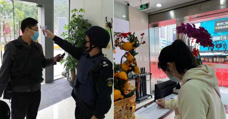 疫情發(fā)生后,寧波銀行深圳分行第一時間為網(wǎng)點員工準備了體溫計、洗手液、酒精、手套、口罩和護目鏡等防疫物資,督促員工測體溫、勤洗手、戴口罩,做好安全防護工作。網(wǎng)點做好到行客戶體溫檢測和基本情況登記工作,引導客戶減少聚集,快速辦理業(yè)務(wù)。
