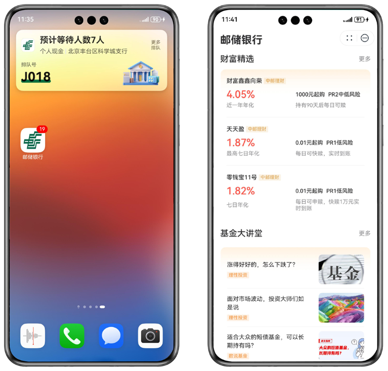 深度擁抱鴻蒙系統(tǒng),打造服務(wù)新體驗(yàn)。郵儲(chǔ)銀行鴻蒙版手機(jī)銀行、郵儲(chǔ)信用卡App不僅全面覆蓋Android版和IOS版全部功能,為客戶提供“三端”一致的客戶體驗(yàn),更借助鴻蒙操作系統(tǒng)的新特性,為客戶打造出多項(xiàng)新體驗(yàn)。例如,在“實(shí)況窗”基礎(chǔ)上實(shí)現(xiàn)的網(wǎng)點(diǎn)預(yù)約,可向用戶展示網(wǎng)點(diǎn)排隊(duì)信息;基于鴻蒙元服務(wù)的郵儲(chǔ)銀行服務(wù)卡片讓客戶無(wú)需啟動(dòng)App即可瀏覽最新的投資理財(cái)產(chǎn)品。