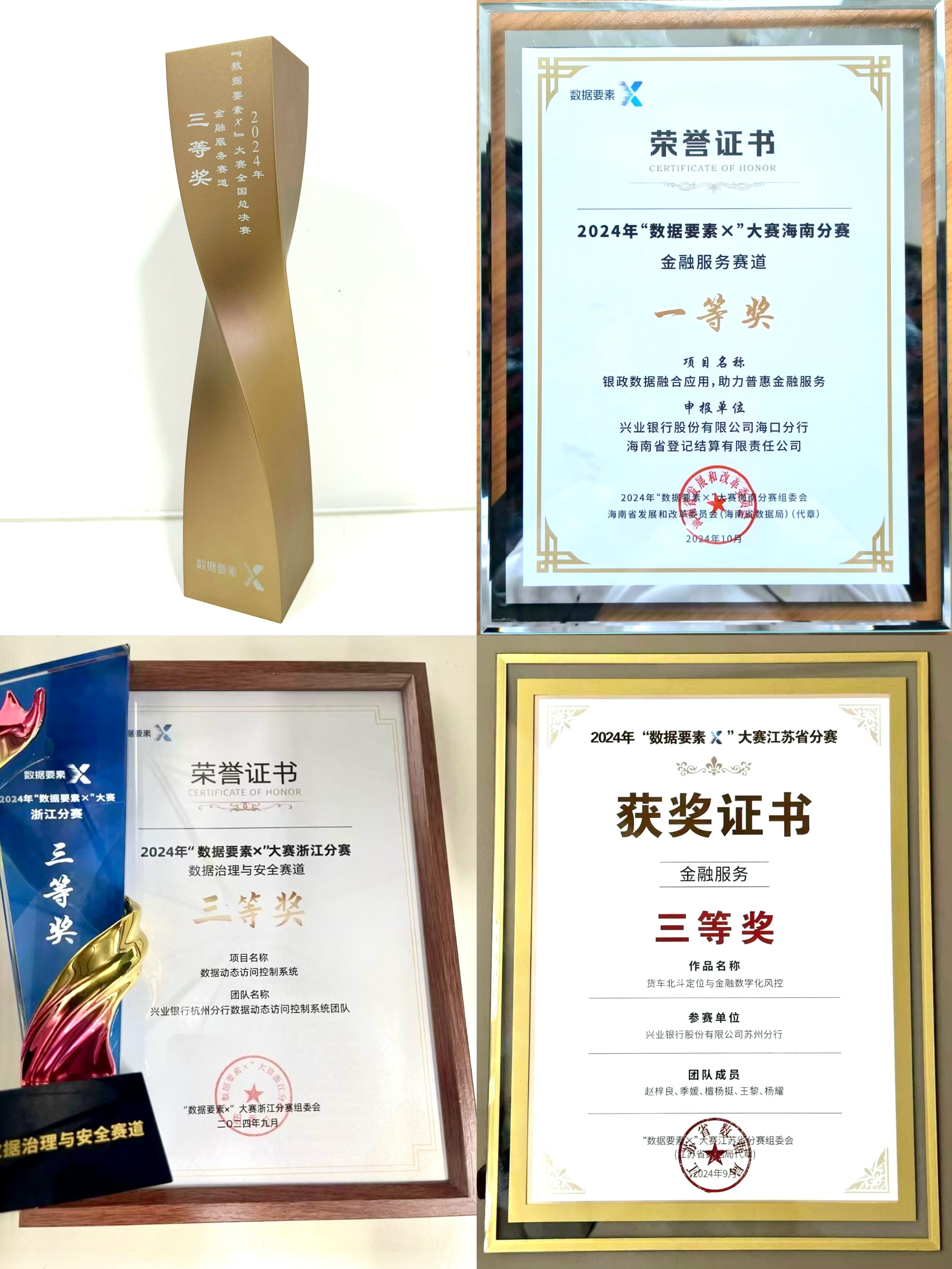 近年來(lái),興業(yè)銀行緊跟數(shù)字中國(guó)建設(shè)步伐,傳承“科技興行”基本方略,全面加快數(shù)字化轉(zhuǎn)型,持續(xù)深挖數(shù)據(jù)要素價(jià)值,實(shí)現(xiàn)數(shù)據(jù)多場(chǎng)景應(yīng)用、多業(yè)務(wù)賦能,深化數(shù)字興業(yè)與實(shí)體經(jīng)濟(jì)融合發(fā)展,全力以赴做好“數(shù)字金融”大文章。在本次賽事中,興業(yè)銀行多家分行取得佳績(jī),其中??诜中械摹般y政數(shù)據(jù)融合應(yīng)用,助力普惠金融服務(wù)”項(xiàng)目獲海南省一等獎(jiǎng)、杭州分行的“數(shù)據(jù)動(dòng)態(tài)訪問(wèn)控制系統(tǒng)”項(xiàng)目獲浙江省三等獎(jiǎng)、蘇州分行的“貨車(chē)北斗定位與金融數(shù)字化風(fēng)控”項(xiàng)目獲江蘇省三等獎(jiǎng),彰顯了該行數(shù)字化轉(zhuǎn)型漸次開(kāi)花結(jié)果,數(shù)字化能力進(jìn)一步提升。(以上圖片由興業(yè)銀行深圳分行提供 授權(quán)給深圳新聞網(wǎng)使用)