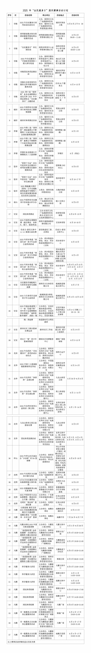 2025年8月8日是我國第17個“全民健身日”。今年,深圳迎來了第十五屆全國運動會和殘?zhí)貖W會,為積極響應(yīng)“全民全運,全運惠民”的理念,深圳在“全民健身日”期間精心組織了57項群眾喜聞樂見的賽事活動,涵蓋球類、徒步、騎行、水上等多個項目,139家體育場館面向市民免費或優(yōu)惠開放,降低運動門檻,惠及更多市民。
