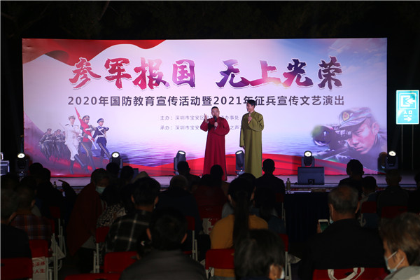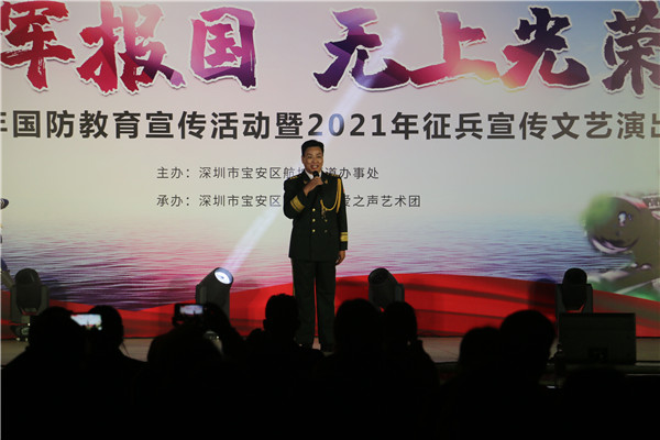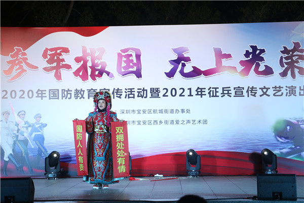 見(jiàn)圳客戶(hù)端?深圳新聞網(wǎng)2020年12月2日訊 為增強(qiáng)轄區(qū)居民的國(guó)防意識(shí),做好今年冬季征兵工作,12月1日,深圳市寶安區(qū)航城街道辦“參軍報(bào)國(guó) 無(wú)上光榮”為主題的國(guó)防教育宣傳活動(dòng)暨2021年征兵宣傳文藝演出在航城街道辦成功舉辦。此次活動(dòng)由深圳市寶安區(qū)航城街道辦主辦,寶安區(qū)西鄉(xiāng)街道辦愛(ài)之聲藝術(shù)團(tuán)承辦。