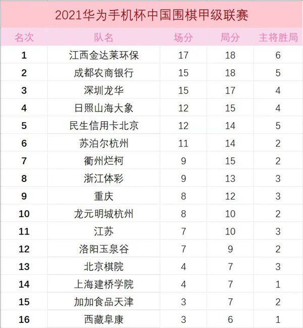 見(jiàn)圳客戶端?深圳新聞網(wǎng)2021年6月7日訊(記者周錦春)華為手機(jī)杯男子圍甲聯(lián)賽在浙江長(zhǎng)興重燃戰(zhàn)火, 深圳龍華隊(duì)1:3不敵日照山海大象隊(duì)跌落榜首,排名被江西和成都超越降至第三位。上屆冠軍江西金達(dá)萊環(huán)保隊(duì)本階段首輪繼續(xù)保持勝勢(shì),3比1擊敗北京棋院隊(duì),金身不敗豪取6連勝,并登上積分榜首位。