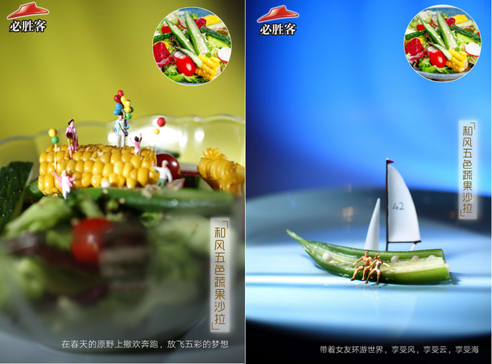 在深圳,必勝客更是腦洞大開,在最新的2018春季菜單,用迷你人偶結(jié)合旅游的場景進(jìn)行創(chuàng)意拍攝。天馬行空的想象,獨(dú)特的視角,妙趣橫生,讓人領(lǐng)略美妙“風(fēng)景”的同時(shí),不禁食指大動(dòng)。