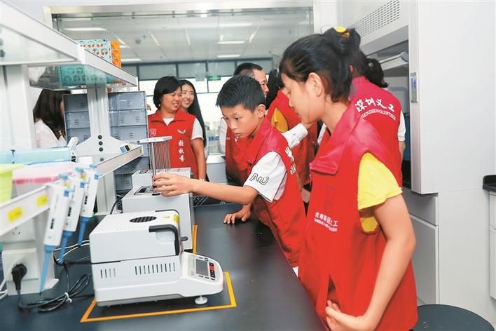 食安志愿者參觀光明街道食品安全快檢室。