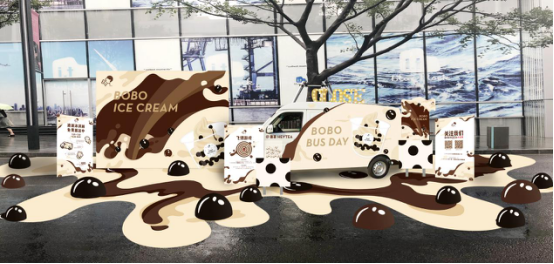 本次喜茶“波波冰淇淋巴士”全面升級(jí),延續(xù)了時(shí)尚的波點(diǎn)元素,融入冰淇淋流質(zhì)爽滑的視覺(jué)形象,讓整個(gè)快閃店在炎熱的夏天也透著一絲絲涼意。現(xiàn)場(chǎng)還增加了波波冰淇淋背景墻與地貼,烘托了夏天的歡樂(lè)氛圍,為消費(fèi)者打造更有趣味性的互動(dòng)環(huán)境。