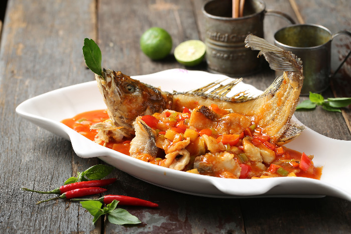 腌制過的鱸魚熱炸后澆上風味獨特的三味醬汁,酸辣鮮香撲鼻而來,聞到都讓人口水直流!