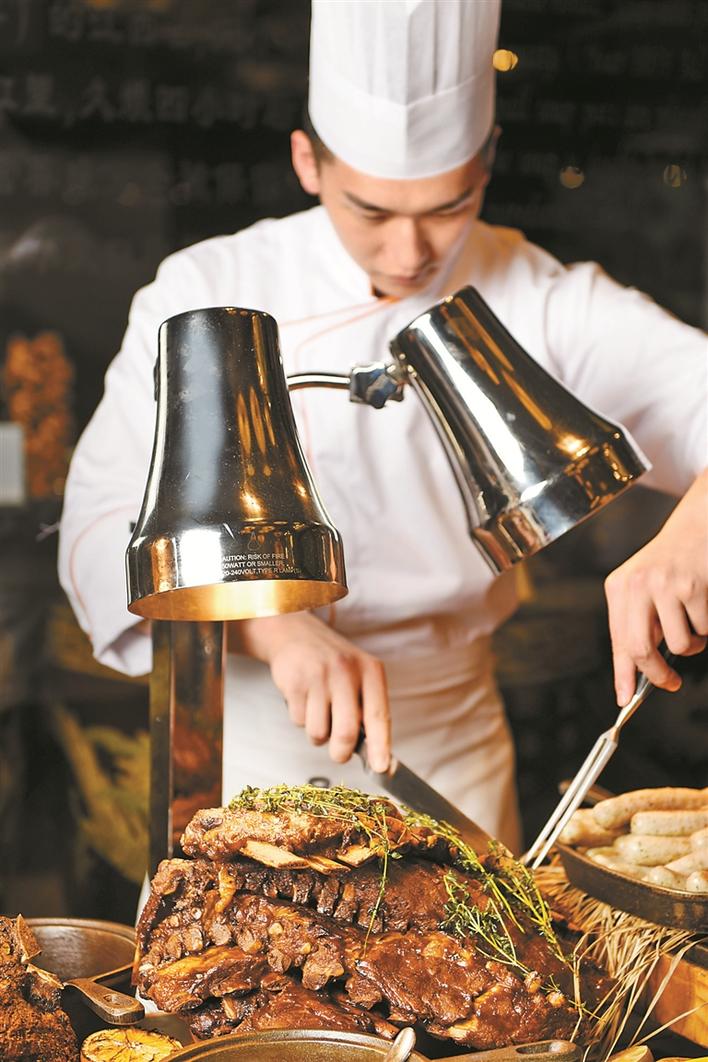 周五至周日則是熱情的“燃”主題自助晚餐。沙威瑪烤肉、T骨牛扒、意式烤豬肉卷、德國(guó)香腸以及德國(guó)堿水面包,酒店主廚做了最簡(jiǎn)單的處理,將肉質(zhì)最鮮美的味道保留下來,再以520華攝氏度將美味繼續(xù)升溫。鮮咖啡餐廳位于酒店一層,環(huán)境優(yōu)雅舒適,全天候開放,供應(yīng)各式散點(diǎn)菜品和自助餐,設(shè)有開發(fā)式廚房,廚師當(dāng)場(chǎng)展示廚藝,炮制環(huán)球特色佳肴。(張璇)