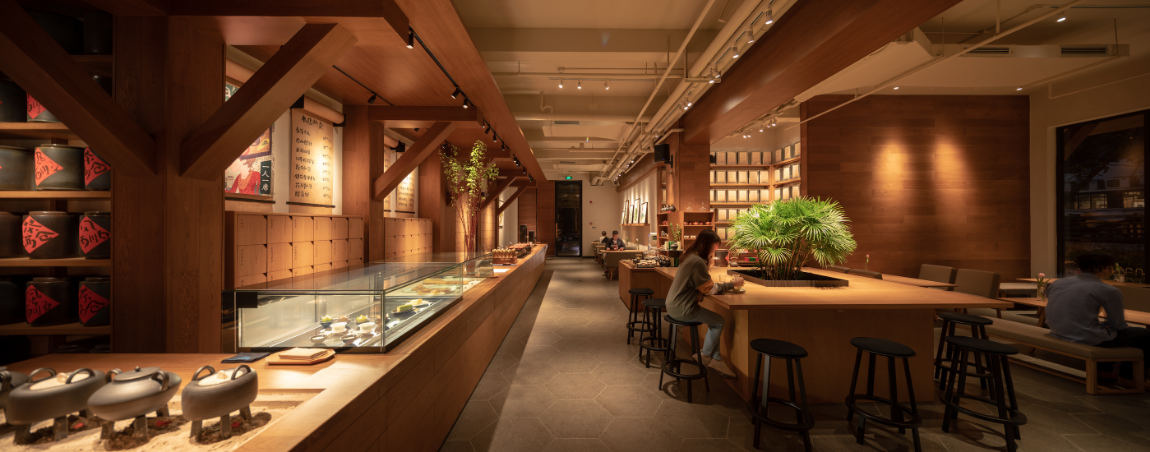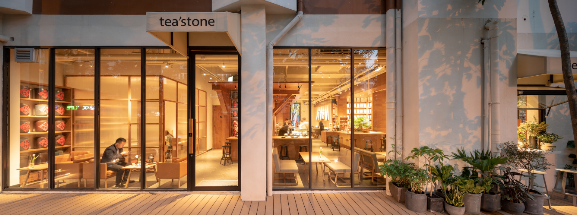 “一個(gè)溫暖的會(huì)客廳”是tea’stone對(duì)所構(gòu)建的茶空間的定義,也是他們對(duì)其所提倡的茶美學(xué)生活的表達(dá)之一。tea’stone團(tuán)隊(duì)有著深厚的空間美學(xué)造詣,在傳統(tǒng)的基礎(chǔ)上做減法,沉浸式的開(kāi)放空間,選取東方美學(xué)的核心因素,以傳統(tǒng)梁柱,斗拱和椽檁,勾勒出當(dāng)代簡(jiǎn)約的茶空間,呈現(xiàn)出精制溫暖的格調(diào),家私、櫥窗、花藝凡見(jiàn)種種,皆散發(fā)著和諧雅致的美感。簡(jiǎn)潔,現(xiàn)代,精致,溫暖,再結(jié)合“一人一席”的飲茶方式,讓喝茶這件事完整靈動(dòng),并且稱(chēng)得上具有美感的生活方式。難怪能看到越來(lái)越多的人們抱著筆記本坐在tea’stone里面獨(dú)處、辦公、會(huì)友?,F(xiàn)代中國(guó)人的“第三空間”從此又有了新的選擇。