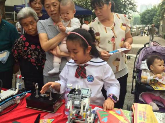 市民在體驗(yàn)EV3編程機(jī)器人和電磁感應(yīng)千人震