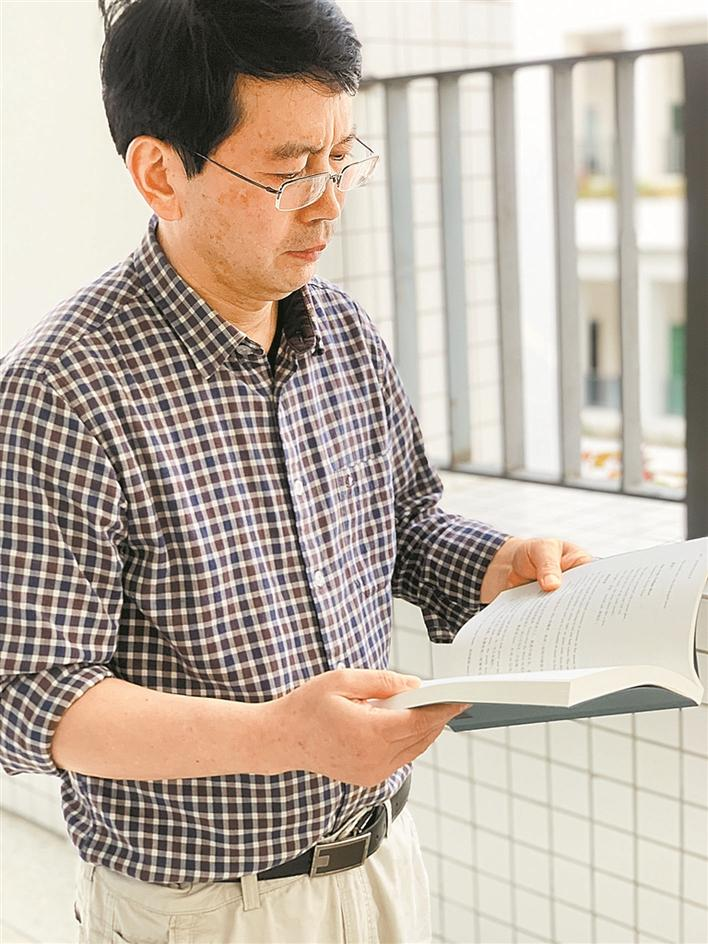 袁小林在翻閱《經典唐詩英譯欣賞》。