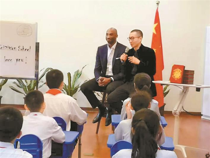“來了,來了!”隨著人群的騷動,一個高大的身影閃了進來,科比手捧一束鮮花來到了課堂??票鹊牡絹?,讓大家正襟危坐,聽從偶像的人生教誨。