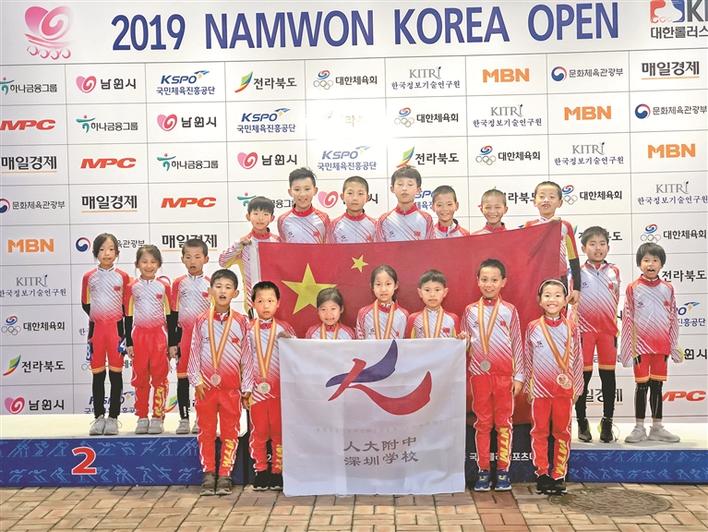 晶報05月16日訊 近日,韓國南原國際輪滑公開賽順利舉行,吸引了來自全球16個國家和地區(qū)的1000多名優(yōu)秀運動員參賽。晶報記者從人大附中深圳學校獲悉,該校小學輪滑隊的11名選手首次代表中國MX青少年隊參加了本次國際輪滑公開賽的小學(1&2年級)的項目比賽,經(jīng)過激烈角逐,喜獲2金4銀13銅。值得一提的是,這是剛成立一年的人大附中深圳學校輪滑隊隊員們在國際舞臺上的首次亮相。學校以愛與尊重為核心理念,注重學生的全面發(fā)展,并注重突出發(fā)展學生特長,充分挖掘學生潛力,開設了豐富多元的課程,其中,開設了輪滑課等必修課,以及舞蹈、國際象棋等特色課程。