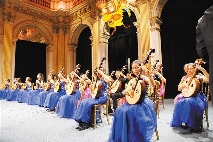 ●2017年2月,受巴黎市政廳邀請(qǐng),少兒阮樂團(tuán)赴法國(guó)參加新年晚會(huì),轟動(dòng)歐洲,成為國(guó)內(nèi)第一支受邀在巴黎市政廳演出的少兒阮樂團(tuán),接受駐法大使翟雋和巴黎市長(zhǎng)的親切接見。