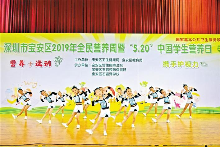 寶安日?qǐng)?bào)5月21日訊 你每天運(yùn)動(dòng)夠60分鐘了嗎?每天都有吃蔬菜水果嗎?如今,已有越來越多的人重視營養(yǎng)、運(yùn)動(dòng)與人體健康的關(guān)系,每年的5月20日是中國學(xué)生營養(yǎng)日,今年的主題是“營養(yǎng)+運(yùn)動(dòng),攜手護(hù)視力”。5月20日下午,寶安區(qū)2019年全民營養(yǎng)周暨“5·20”中國學(xué)生營養(yǎng)日在石巖湖學(xué)校舉行。