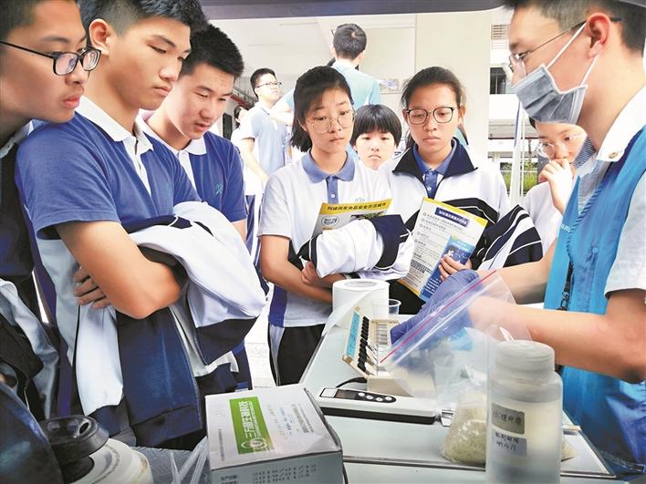 光明區(qū)市場(chǎng)監(jiān)管部門定期進(jìn)學(xué)校開展食安快檢工作。