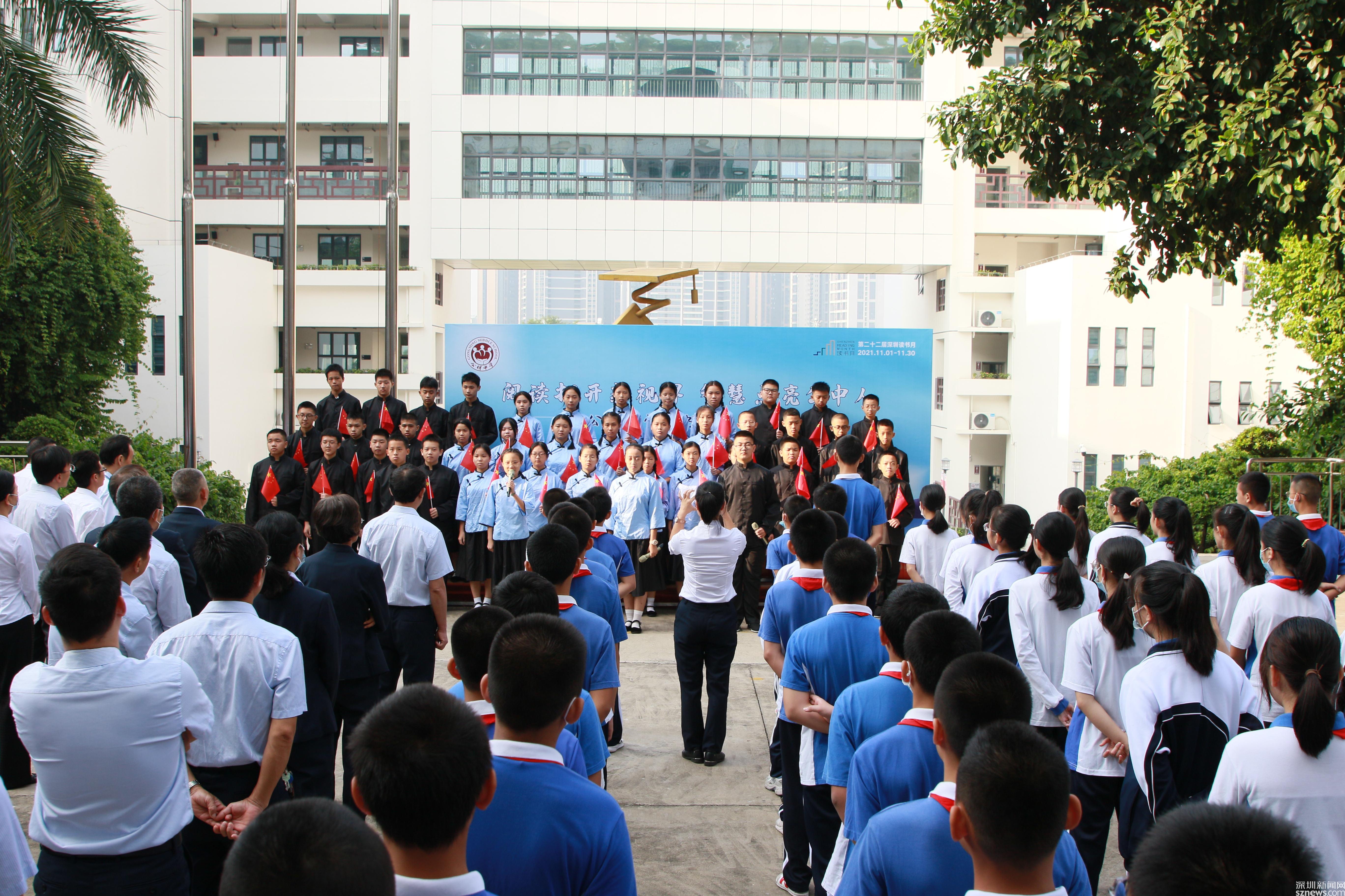 讀特客戶端·深圳新聞網(wǎng)2021年11月2日訊 (記者 曹園芳 通訊員 丘翹楚 劉小云 曾靜敏)為弘揚(yáng)“尊重知識(shí)崇尚文明”的閱讀理念,培養(yǎng)師生良好的閱讀習(xí)慣,營(yíng)造智雅的學(xué)習(xí)氛圍,塑造濃郁書香學(xué)習(xí)型校園,11月1日上午,深圳市光明區(qū)公明中學(xué)組織開(kāi)展了本年度讀書月啟動(dòng)儀式,全校師生參加了活動(dòng),活動(dòng)由初二(5)班譚欣怡同學(xué)主持。