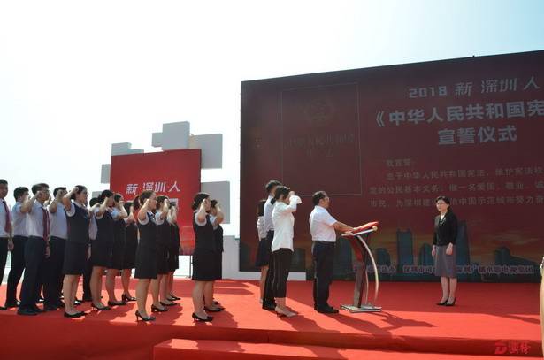深圳新聞網(wǎng)訊 “我宣誓:忠于中華人民共和國(guó)憲法,維護(hù)憲法權(quán)威,履行憲法規(guī)定的公民基本義務(wù),做一名愛國(guó)、敬業(yè)、誠(chéng)信、友善的守法市民,為深圳建設(shè)法治中國(guó)示范城市努力奮斗!”