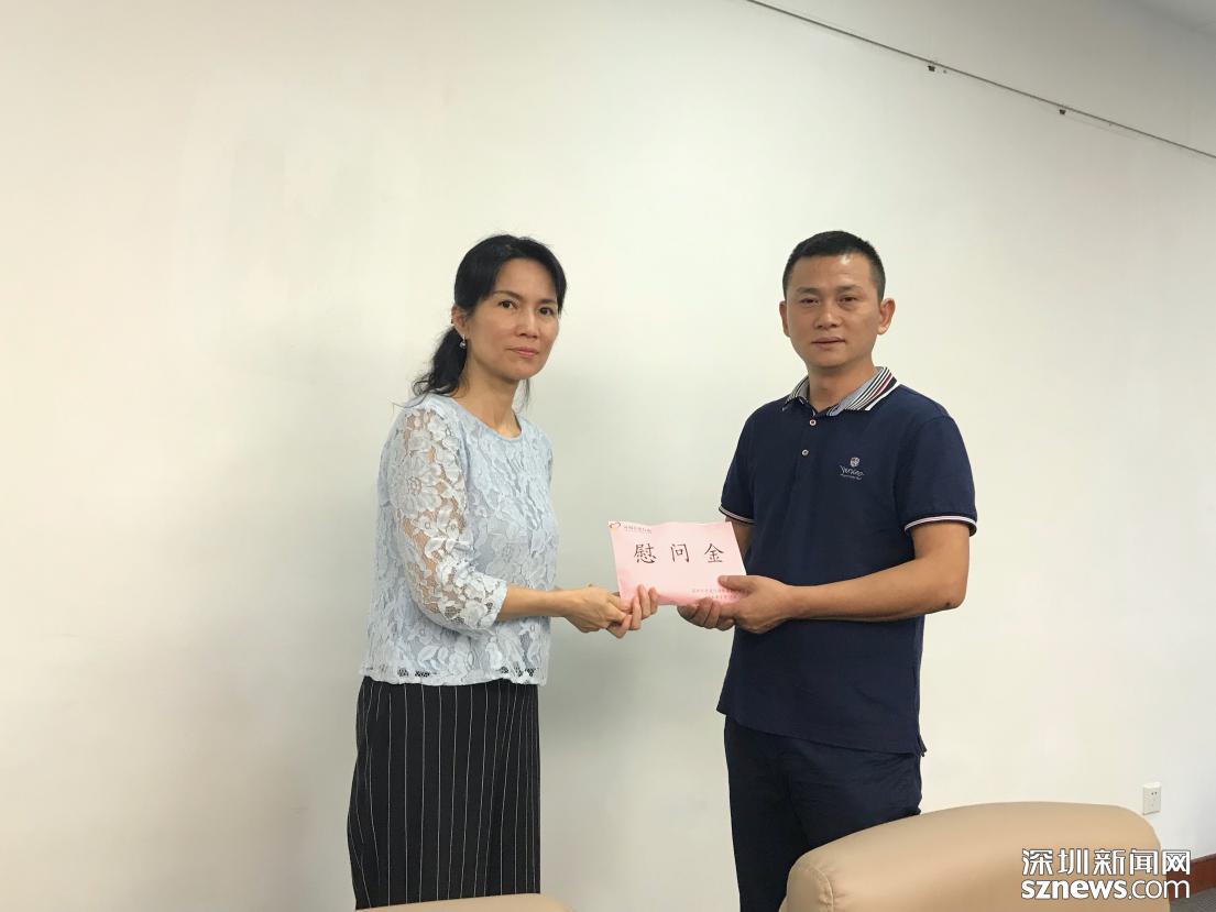 9月25日下午,深圳市關(guān)愛(ài)行動(dòng)組委會(huì)辦公室(以下簡(jiǎn)稱“市關(guān)愛(ài)辦”)和深圳市關(guān)愛(ài)行動(dòng)公益基金會(huì)在得知這一情況之后,積極響應(yīng),在深圳市教育局相關(guān)部門的大力協(xié)調(diào)下,向李得父親送上3萬(wàn)元慰問(wèn)金。市關(guān)愛(ài)辦的相關(guān)負(fù)責(zé)人叮囑李得父親,希望慰問(wèn)金可以幫其家庭渡過(guò)難關(guān),也希望學(xué)校、家庭等各方多加鼓勵(lì)孩子,樹立信心, 放下思想包袱,好好配合開(kāi)展治療,祝愿李得同學(xué)早日康復(fù),重新回到校園上課。
