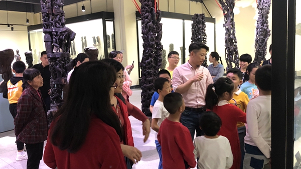 也許是被熱情的笑容和鼓舞所感染,天真活潑的小朋友們一到現(xiàn)場(chǎng)便與非洲大哥哥大姐姐們迅速的打成一片,毫無(wú)距離感。在非洲哥哥姐姐們的鼓聲引領(lǐng)下,同學(xué)們首先來(lái)到非洲文化博物館,由于大家都是第一次接觸非洲藝術(shù)品,哇哇哇的贊嘆聲此起彼伏,博物館工作人員瞬間被大家緊緊包圍,對(duì)各種藝術(shù)品提出了無(wú)數(shù)個(gè)五花八門的問題,真正成了“十萬(wàn)個(gè)為什么”“案發(fā)現(xiàn)場(chǎng)”。“馬賽人為什么住牛糞房子?。俊薄澳绢^為什么是黑色的啊”“坐了酋長(zhǎng)椅是不是就可以做酋長(zhǎng)了?”……由于同學(xué)們第一次這么近距離接觸非洲文化,實(shí)在是太好奇太熱情,與各種藝術(shù)品親密接觸拍照、坐酋長(zhǎng)椅體驗(yàn)“做酋長(zhǎng)”的感覺、甚至工作人員也“網(wǎng)開一面”讓大家騎在大象和獅子木雕上盡情玩耍,導(dǎo)致原本計(jì)劃半小時(shí)的參觀時(shí)間足足一個(gè)半小時(shí)才結(jié)束。