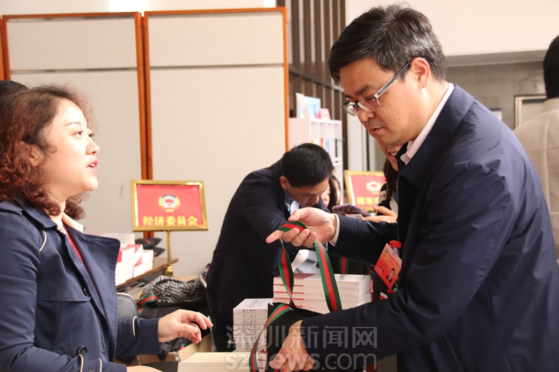 政協(xié)委員張小梨領(lǐng)取會(huì)議資料