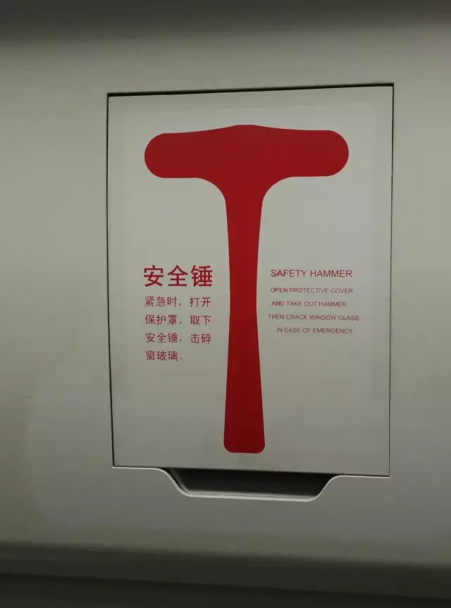 安全錘安裝于列車側(cè)頂上方的盒體內(nèi),每節(jié)車設(shè)有4個。當(dāng)列車發(fā)生緊急情況時,乘客可打開保護(hù)罩取下安全錘,用錘子擊碎窗玻璃逃生。