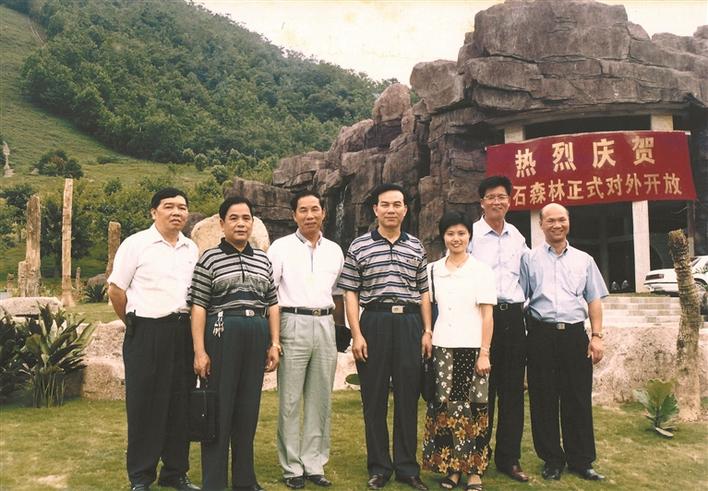 ▲1999年,仙湖植物園化石森林景區(qū)正式對外開放,陳譚清(右二)與同事在景區(qū)前合影。