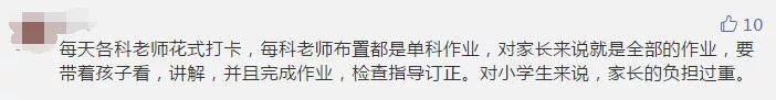 有位一年級孩子的家長坦言,由于需要全程陪讀才知道作業(yè)是什么,下班后的自己也有所松懈,感覺對不起老師的辛勤付出。