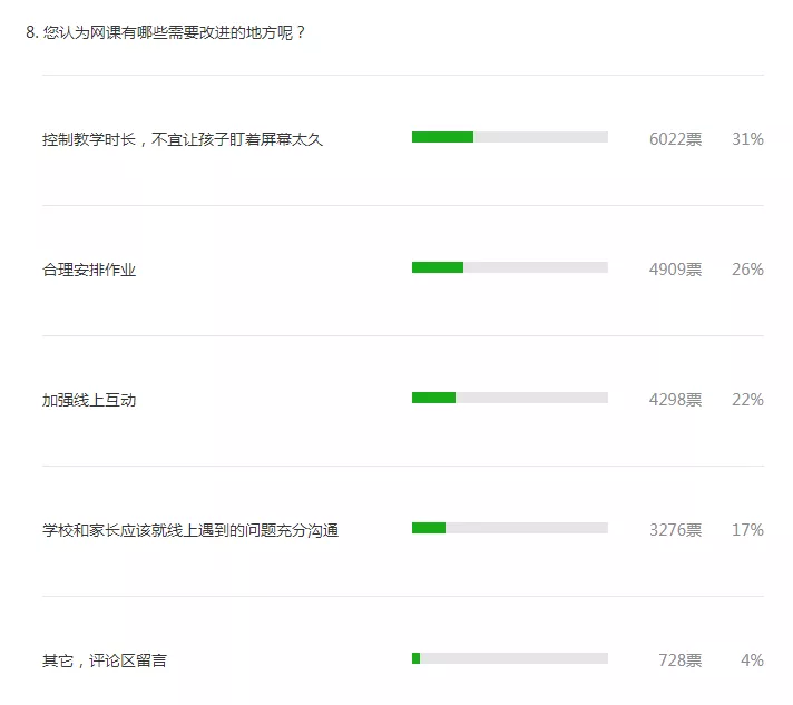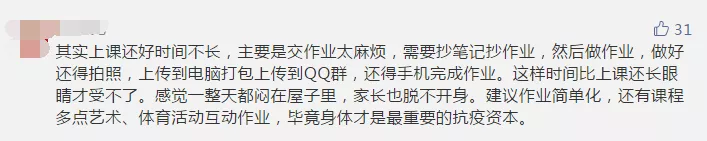 有些參與者則直接留言:由于孩子自律性差,建議低年級不上網(wǎng)課。
