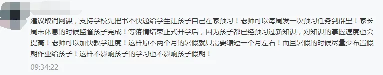 一些參與者留言建議減少或暫停網(wǎng)課時(shí)間,縮短周末或暑假時(shí)間進(jìn)行補(bǔ)課。
