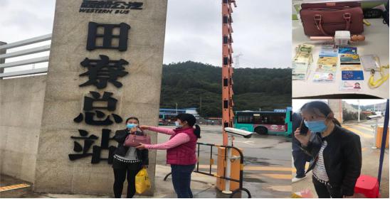 當(dāng)天下午,邱女士乘坐 M455線路公交車前往光明區(qū)文化館,途中她順手把包放在座位上,到站時(shí)下車匆忙居然忘了拿,等反應(yīng)過來(lái),車早已開遠(yuǎn),車牌號(hào)也看不清了,這可把她急壞了。冷靜下來(lái)后,邱女士趕緊致電西部公汽客服求助??头藛T了解情況后,將其電話轉(zhuǎn)接到該公交車所在的田寮車隊(duì)。班車隊(duì)管理人員根據(jù)邱女士的描述,很快鎖定她乘坐的是由董健康師傅駕駛的牌號(hào)為粵 B40553D的車,便迅速讓 GPS監(jiān)控員關(guān)注車輛情況,聯(lián)絡(luò)司機(jī)董師傅留意車上是否有符合失主描述的手提包,確認(rèn)了包仍在座位上以后,及時(shí)反饋失主邱女士,安撫其焦慮情緒。
