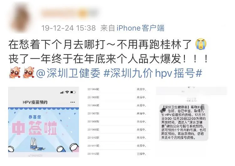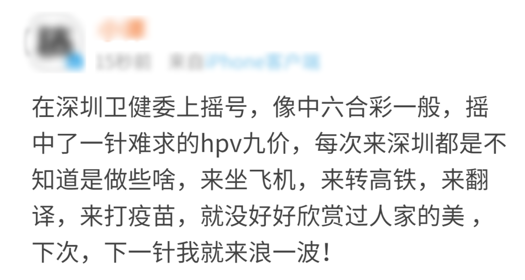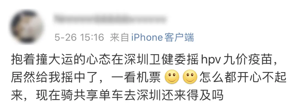 “嗚嗚嗚……簡直不敢相信我的眼睛,前段時(shí)間連口罩都抽不中的我,竟然抽中了九價(jià)HPV疫苗”。