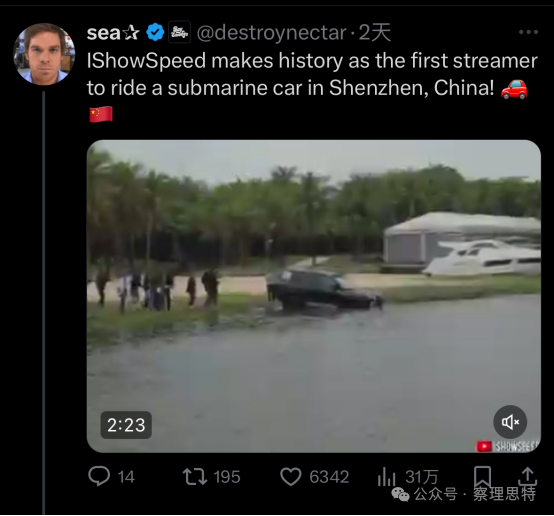 (IShowSpeed 創(chuàng)造了歷史,成為第一個(gè)在中國(guó)深圳乘坐潛水艇車(chē)的流量博主?。?/p>