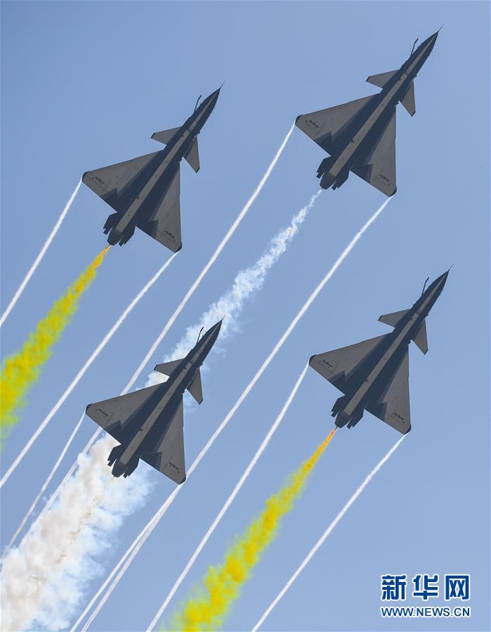 11月6日,中國空軍八一飛行表演隊(duì)在航展現(xiàn)場進(jìn)行飛行表演。當(dāng)日,第十二屆中國國際航空航天博覽會在珠海開幕。新華社記者鄧華攝