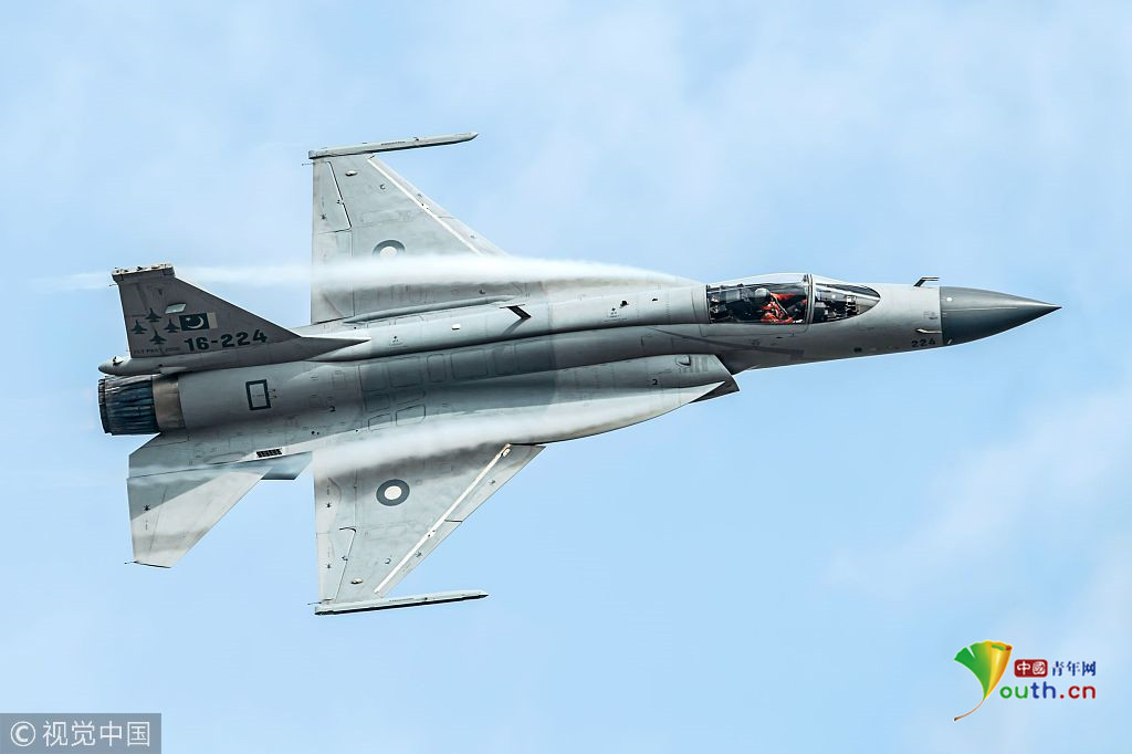 圖四:2018年11月6日,廣東珠海航展上,一架巴基斯坦空軍梟龍戰(zhàn)機進(jìn)行飛行表演。