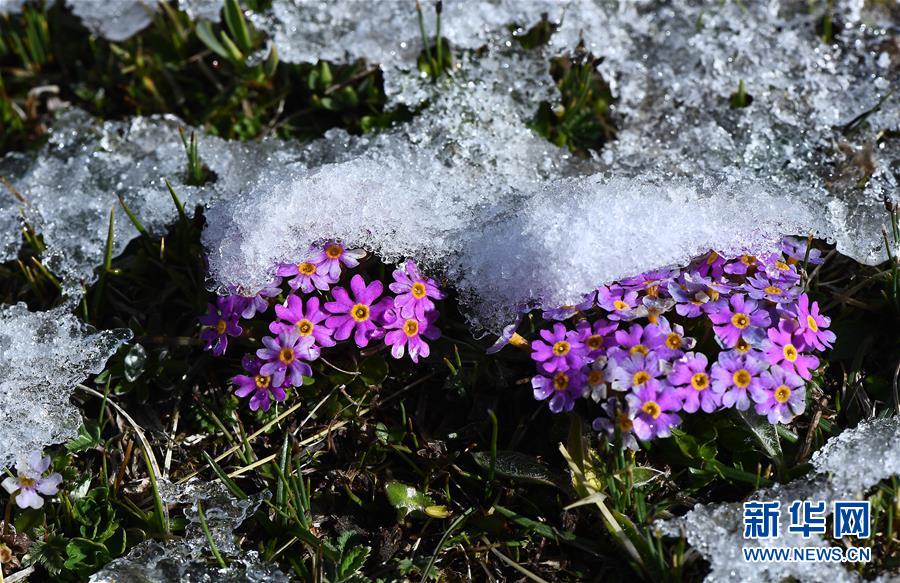 在年保玉則,野花上的冰雪漸漸消融(5月21日攝)。 年保玉則位于青海省果洛藏族自治州久治縣境內(nèi),地處三江源國(guó)家公園核心區(qū),主峰海拔5369米。年保玉則周圍森林茂密,湖泊星羅棋布,棲息著裸鯉、巖羊、白唇鹿、棕熊等珍稀動(dòng)物。 新華社記者 張宏祥 攝