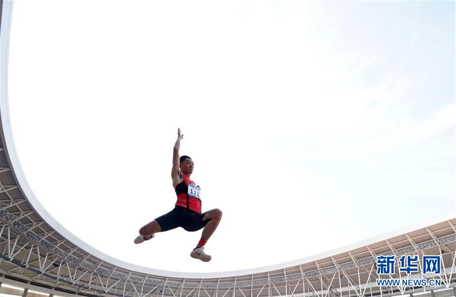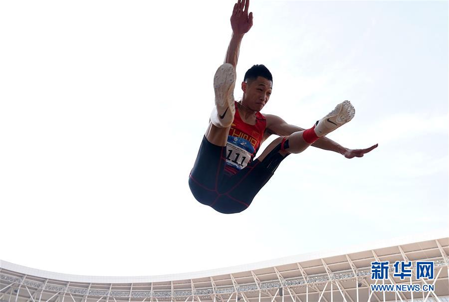 10月24日,中國選手王嘉男在比賽后慶祝。 當(dāng)日,在武漢舉行的第七屆世界軍人運動會田徑項目男子跳遠(yuǎn)決賽中,中國選手王嘉男、黃常洲分別以8米15和8米12的成績獲得冠亞軍。 新華社記者金良快攝