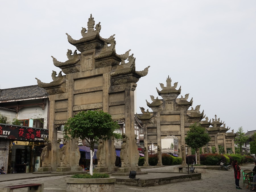 隆昌石牌坊大多為四柱三門(mén)三重檐五滴水石質(zhì)牌樓式建筑,平均面寬9米,通高11米,坊間距離最近處僅10余米。李仁奇攝