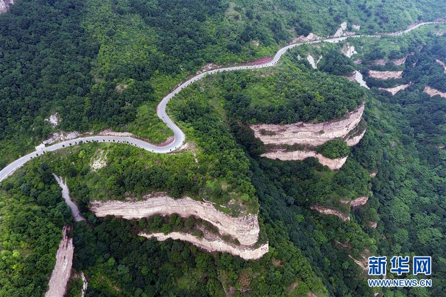 山西省武鄉(xiāng)縣境內的板山風光(6月18日無人機拍攝)。