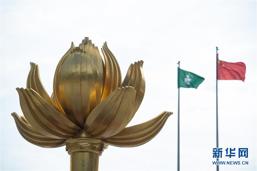 這是澳門金蓮花廣場(chǎng)上的《盛世蓮花》雕塑(12月13日攝)。新華社記者張金加攝