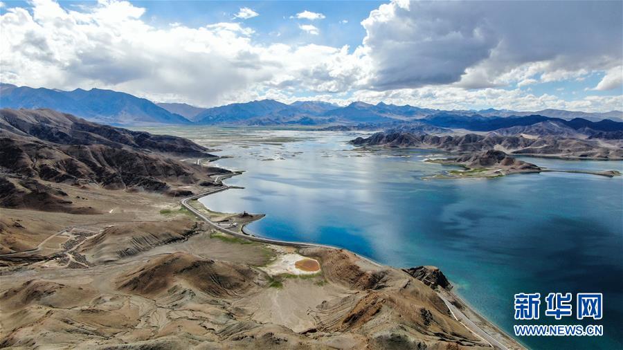 西藏阿里地區(qū)日土縣境內(nèi)的班公錯(cuò)(8月3日無(wú)人機(jī)拍攝)。新華社記者晉美多吉攝