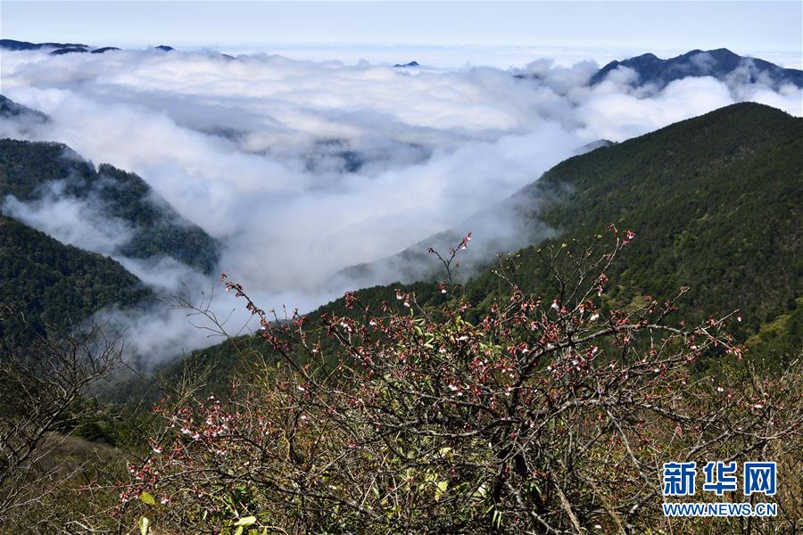 站在武夷山國家公園最高峰黃崗山遠望云霧繚繞的群峰(4月1日攝)。新華社記者姜克紅攝