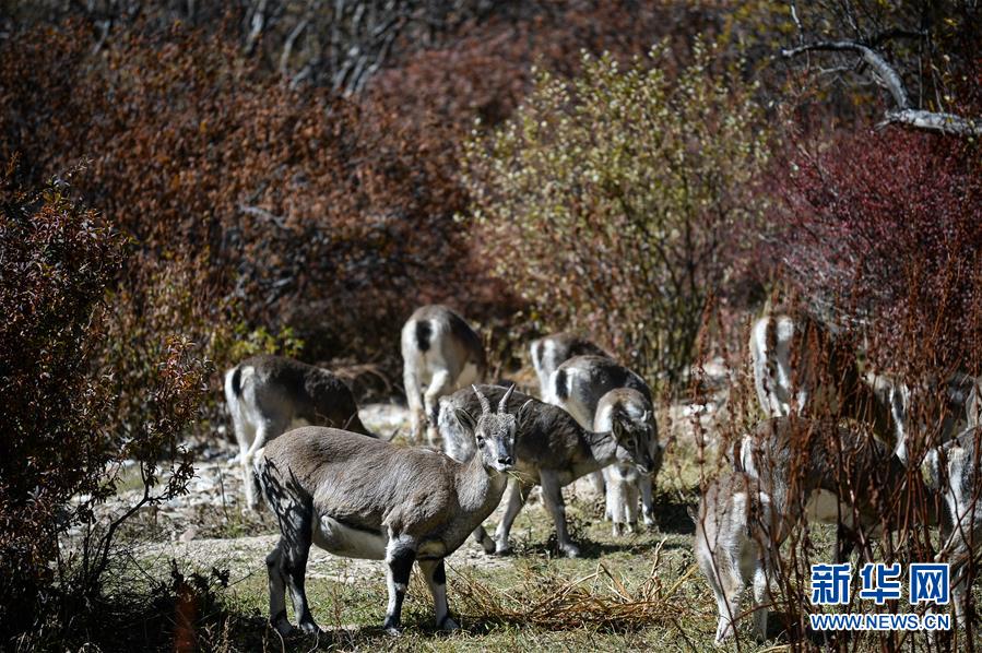 這是在四川亞丁國家級自然保護區(qū)拍攝的野生巖羊(2019年10月20日攝)。新華社記者唐文豪攝