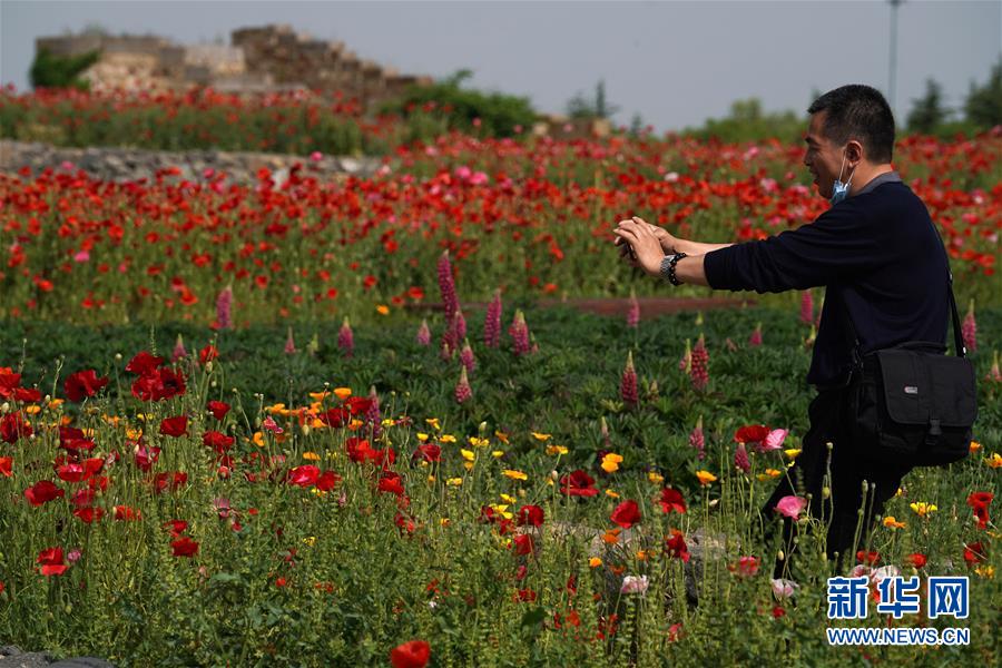 5月13日,游客在江蘇宿遷三臺山森林公園衲田花海賞花游玩。新華社記者韓瑜慶攝