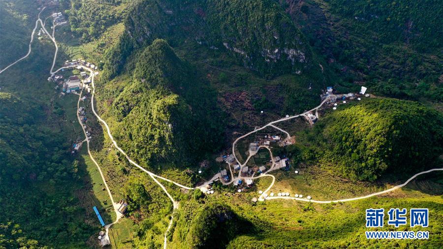 這是大化瑤族自治縣七百弄鄉(xiāng)山洼瑤寨風(fēng)貌(5月14日攝,無人機照片)。新華社記者張愛林攝